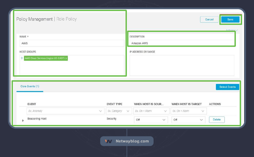 اکنون رویداد امنیتی Host Beaconing باید برای ترافیک مرتبط با این Host Group غیرفعال شده است.