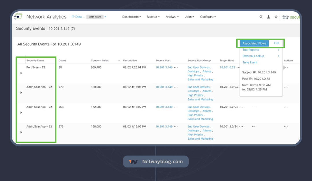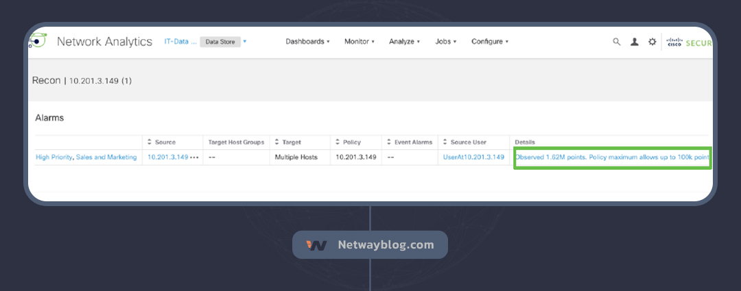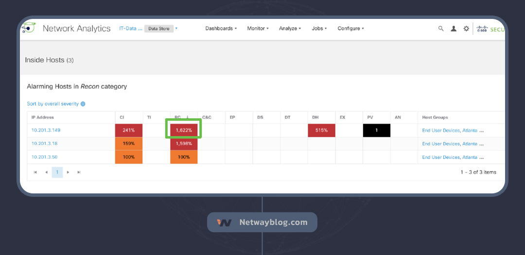 محصول SNA سیسکو یک راهکار قدرتمند برای شناسایی این نوع از تهدید ها میباشد.هشدارهای ریکان (Recon) در Cisco Secure Network Analytics نشان دهنده وجود اسکنهای غیرمجاز و احتمالاً مخرب، با استفاده از TCP یا UDP در برابر Hostهای سازمان شما است.
